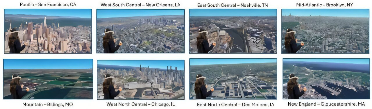در این آزمایش، شرکتکنندگان با استفاده از عینک واقعیتمجازی، در یک محیط سهبعدی و غوطهورکننده از شهرهای مختلف به پرواز درآمدند و همزمان، داستان تغییرات اقلیمی آن منطقه را شنیدند.